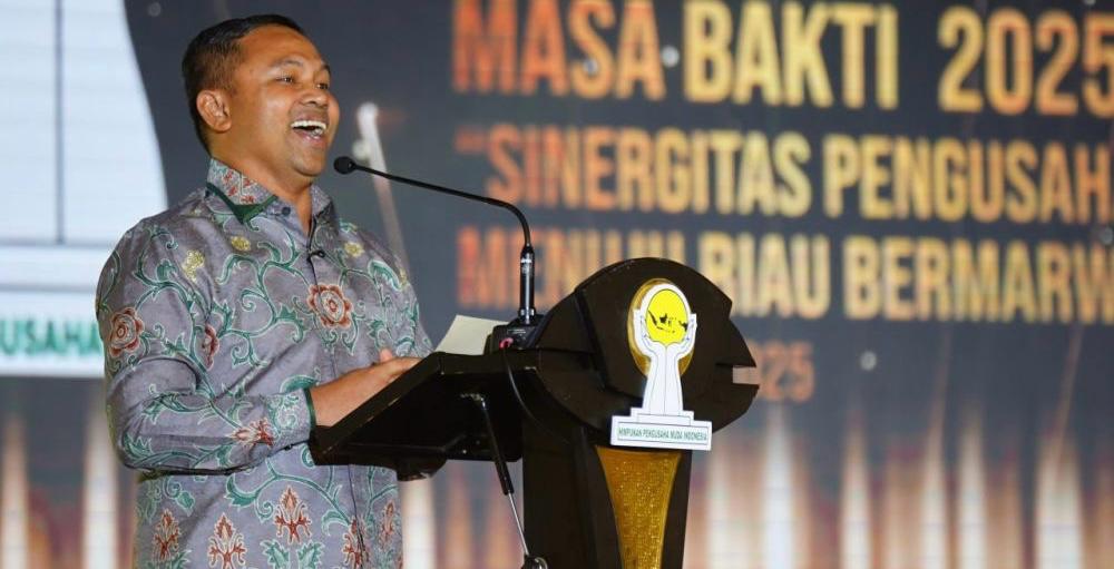 Gubernur Riau Abdul Wahid saat menghadiri pelantikan Badan Pengurus Daerah HIPMI Riau masa bakti 2025–2028, Jumat (1/8).